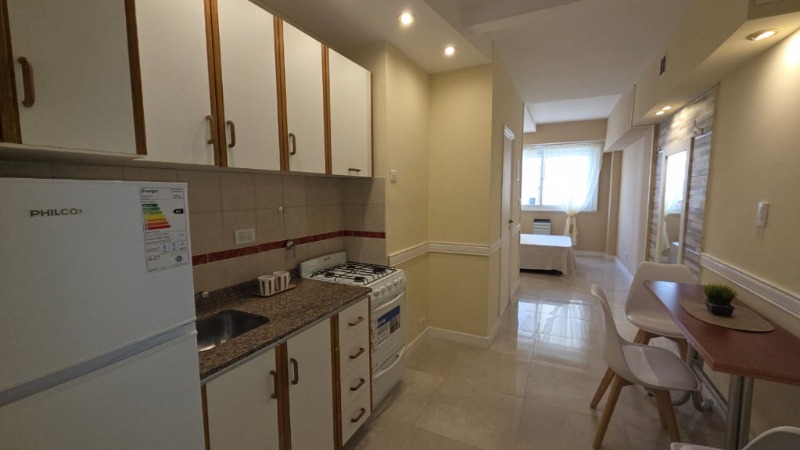Departamento de dos ambientes muy luminoso y comodo. Excelente estado. Muy buena ubicacion frente a la Plaza Colon. Zona con innumerables comercios de diversos rubros. Informacion del departamento: - Living comedor amplio con piso parquet plastificado. - Amplia cocina revestida en porcelanato. Amoblamiento de cocina a medida, cuenta con heladera, calefon y cocina. - Dormitorio principal con piso parquet plastificado, sommier de 2 plazas. - Baño completo.