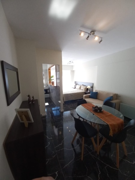 El living comedor es cómodo y luminoso, con piso de parquet plastificado y salida directa al balcón, lo que permite una excelente ventilación natural. El dormitorio, también con piso de parquet plastificado, cuenta con placard, cómoda y salida a un balcón cerrado, aportando mayor funcionalidad al espacio.