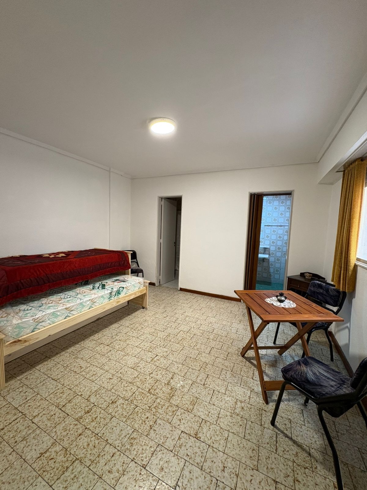 El dormitorio, también con pisos de parquet plastificados, dispone de placard, cómoda y salida a un balcón cerrado, aportando mayor espacio y versatilidad.