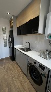La cocina está completamente equipada con cocina de acero inoxidable, heladera con freezer, lavarropas automático, mesada de cuarzo y pileta Johnson, combinando diseño y funcionalidad.