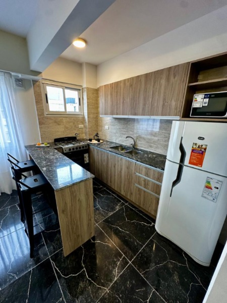 Departamento 2 ambientes externo con ventanal – Totalmente reciclado Ubicado en Santiago del Estero 1700. La propiedad ofrece un amplio living comedor con gran ventanal al exterior, lo que le aporta excelente luminosidad. Cuenta con pisos de cerámico rectificado en todos sus ambientes. Dispone de cocina integrada con barra desayunadora, revestida en cerámico, equipada con cocina, heladera, calefón y microondas. El dormitorio posee placard y el baño se encuentra completamente revestido en cerámico. El departamento se entrega pintado, amoblado, con calefactor instalado y luminarias colocadas. Superficie aproximada: 50 m². Valor: U$S 92.900.