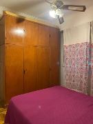 Dormitorio con piso de parquet y amplio placard empotrado de piso a techo.