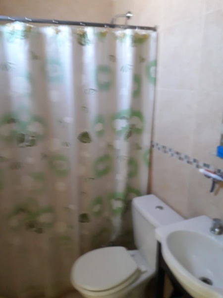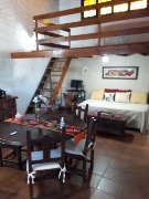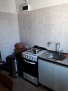 Amplia cocina comedor de 3,5 x 4 m con gran ventana al parque y revestida en cerámico; equipada con mesadas de mármol y de madera, bajo mesadas, placard empotrado, cocina y termotanque. Baño completo revestido en cerámicos para modernizar.