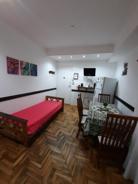 Equipado con: mesa, sillas, TV, sofá cama y heladera con freezer
