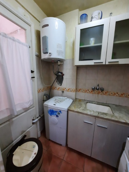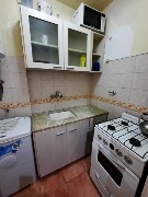 Equipada con: alacena, bajo mesada, cocina, microondas, termotanque, lavarropas y secarropas