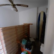 Lavadero exterior reciclado de 2,8 x 1,5 m, revestido en moderna cerámica, cubierto con techo de policarbonato y rejas; equipado con mesada, pileta y conexiones para lavarropas.